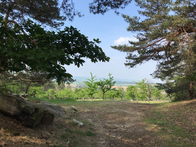 Der Hoppelberg und die damit verbundene Jagd gehörten dem Langensteiner Gutsbesitzer. Der Steintisch diente als Treffpunkt und Rastplatzfür die Jagdgesellschaften. Prominenter Jagdpächter war der Dichterfürst Gleim. - Kirschwiese